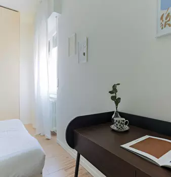 This two-room apartment is located in the zone of Porta Romana, near to the Hospital Ospedale Maggiore Policlinico and to the Dome of Milan, which may be reached in ten minutes by taking the tram 16 or the bus 84. Nearby, there is IED, the Europea...