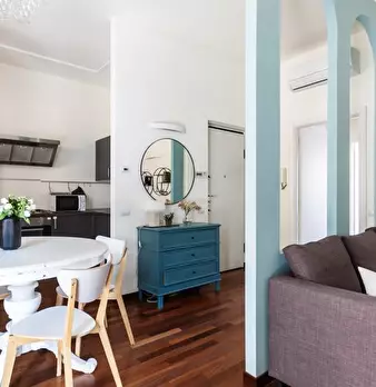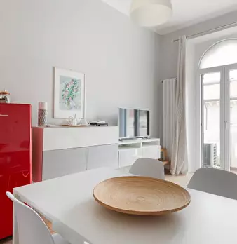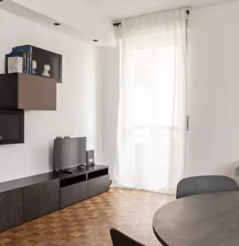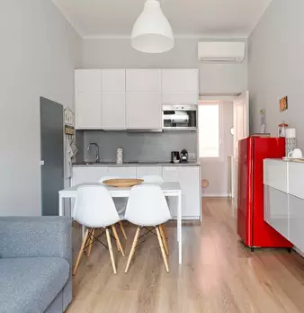 Appartamento con una camera da letto ristrutturato con gusto ed eleganza nel quartiere alla moda di Isola, dotato di una spaziosa e luminosa zona giorno con una cucina moderna, un'accogliente zona pranzo e un comodo divano con TV a grande schermo....