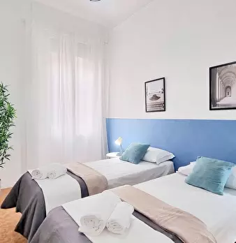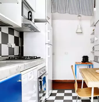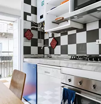 Moderno alloggio di 56 m2 per 4 persone, con cucina a vista, divano letto matrimoniale, balcone, camera matrimoniale e bagno, situato al terzo piano (con ascensore) di un palazzo in zona NoLo (Loreto Nord), a soli 500 metri dalla fermata della M1 ...