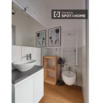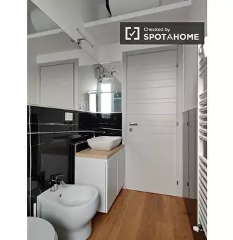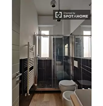 Scopri una stanza in un appartamento condiviso con 4 camere da letto situato nel quartiere Gallaratese di Milano. L'appartamento è completamente arredato e dispone di riscaldamento centralizzato. Include servizi essenziali come balcone/terrazzo, c...