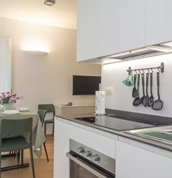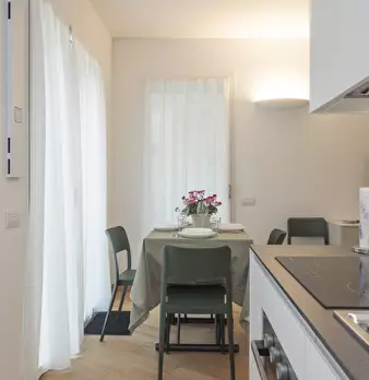 Raffinato bilocale situato nella prestigiosa zona di Susa, a pochi passi dalla metropolitana. L'appartamento, elegantemente ristrutturato, offre una luminosa zona giorno; la cucina a vista, completa di tavolo da pranzo e comodo divano letto, è dot...