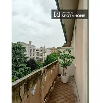 Scopri questo appartamento arredato con una camera da letto disponibile per l'affitto in zona Barona a Milano. L'appartamento comprende una cucina attrezzata e una lavatrice privata, e dispone di un balcone o di una terrazza per rilassarsi all'ape...