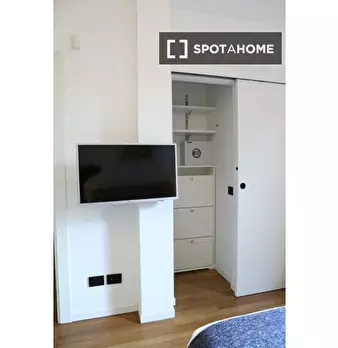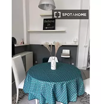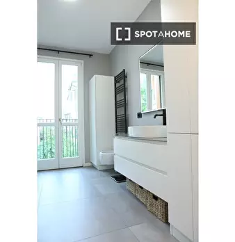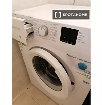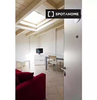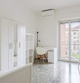 Questo appartamento arredato con una camera da letto a Bovisa, Milano, offre un confortevole soggiorno con aria condizionata centralizzata, lavatrice privata e cucina attrezzata. La pulizia periodica è professionale e la biancheria da letto è incl...