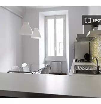 Ampio trilocale, situato a pochi passi dai Navigli, uno dei quartieri più amati e conosciuti di Milano. L'appartamento offre due ampie e luminose camere matrimoniali, una cucina a vista attrezzata con penisola e grande tavolo da pranzo, ed un bagn...