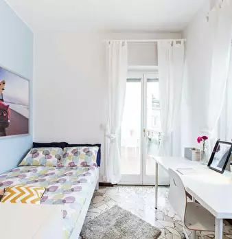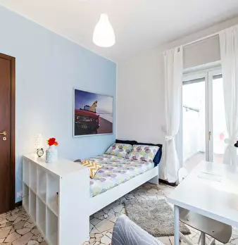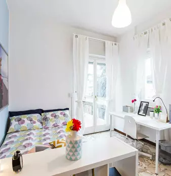 Located in *Lorenteggio / Bande Nere / Primaticcio / Bisceglie* , this bright room offers a comfortable city base with easy access to local shops and transit. The *Room* is approximately 17 m2 and features a *balcony* , a modern bed setup and acce...