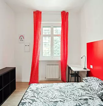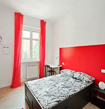 Located in the Lorenteggio / Bande Nere / Primaticcio / Bisceglie area, this bright room offers a comfortable city base close to local transport and services. Room: Queen size bed, 11 m2. The apartment is well equipped with heating, oven, dishwash...
