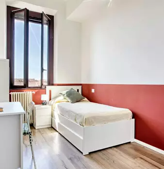 Located in the Pagano / De Angeli / Fiera area, this well-equipped room offers a comfortable base in Milan with smart building services and easy access to local life. The room is a Queen Size Bed layout of 10.12 m2 with access to a large 150 m2 ap...