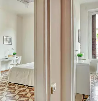 Single room in a shared apartment, composed by 5 bedrooms and 2 bathrooms. Of about 26 sqm with a double bed and a work station. With wifi, concierge services, dishwasher, washing machine. Energy class: D, IPE 103.42 Kwh/Sqm year. Current tenant...
