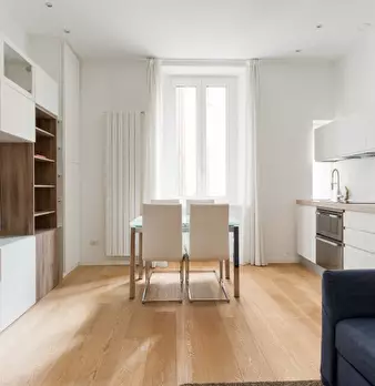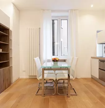 Elegante e silenzioso 50 mq. bilocale con affaccio su corte interna, posto al secondo piano con ascensore di un bel palazzo nel cuore di Milano. Recentemente ristrutturato in stile moderno e minimale, composto da cucina a vista con tavolo da pranz...