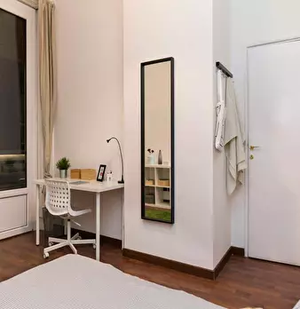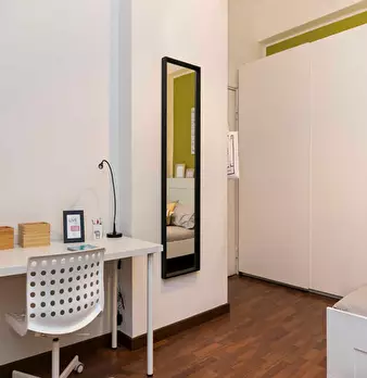 Settle into this tranquil single room on Via Cenisio 42, an ideal retreat for students or professionals seeking peace in a bustling city. The room features wooden flooring and a quiet window facing the interior courtyard, ensuring a calm environme...