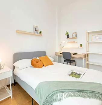 ✨ Spacious Bedroom with Ensuite Bathroom✨ This bright and comfortable double room with an ensuite bathroom is available for rent in Milan. The room features a cozy double bed, a desk for work or study, and ample storage space. Located in a sha...