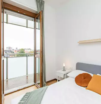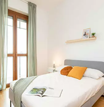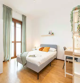 Located in the Cesano Boscone district, this bright room offers a comfortable, well-connected setting ideal for focused living. The room is a Queen Size Bed setup of 19 m2 with access to a balcony and access to a shared bathroom in a four-room apa...