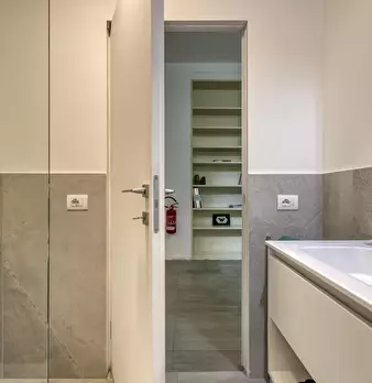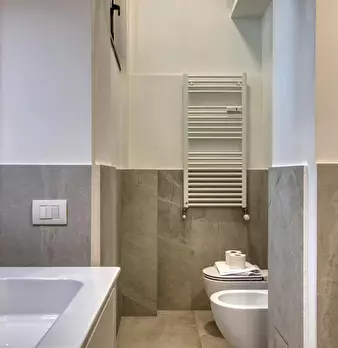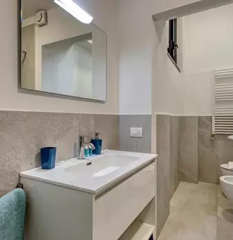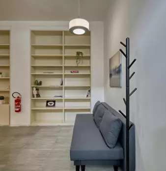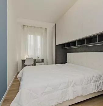 Welcome to this charming two-bedroom apartment in Milan. This cozy retreat combines modern comfort with classic Italian charm. The living area is tastefully furnished with a comfortable sofa and a flat-screen TV, while the adjacent kitchenette is...