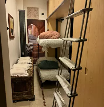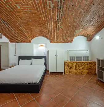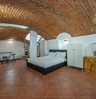 Loft-style 3-level apartment on Via Nino Bixio: a double bedroom on the top floor, a bright living level with kitchen and dining area plus a double sofa bed, and a lower-ground lounge with brick-vault ceilings and an additional double sofa bed. Ai...