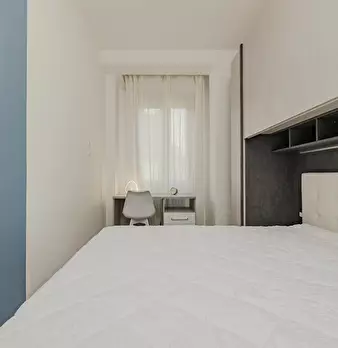 Welcome to this spacious double room in a comfortable three-bedroom apartment located at Via Bardelli 11, Milan. The room is well-furnished with a large bed, desk, and wardrobe, making it an ideal choice for couples. The apartment offers a spaci...