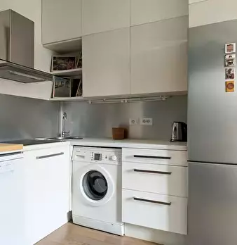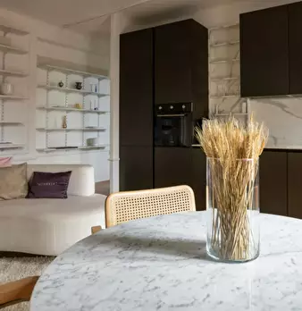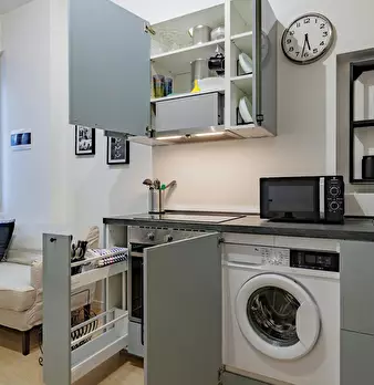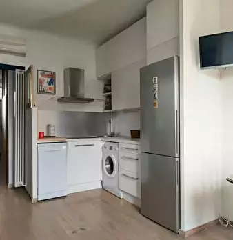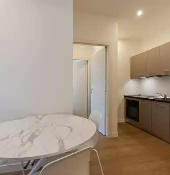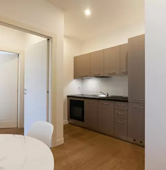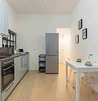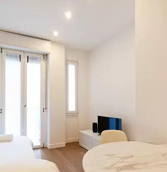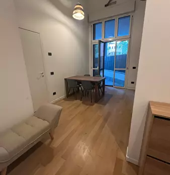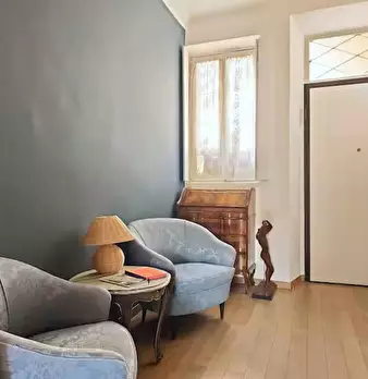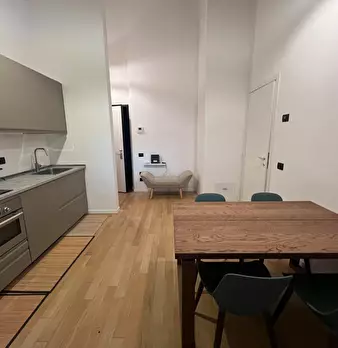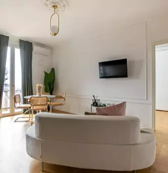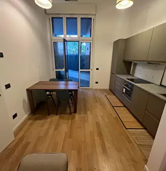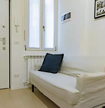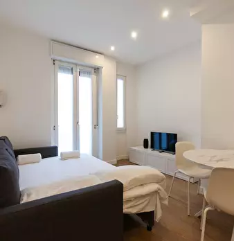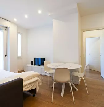 Welcome to this charming one-bedroom apartment in Milan. This cozy retreat combines modern comfort with classic Italian charm. The living area is tastefully furnished with a comfortable sofa and a flat-screen TV, while the adjacent kitchen is equ...