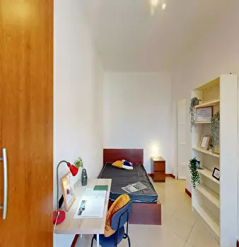 Single room in a shared apartment, composed by 4 bedrooms and 1 bathroom. Of about 16 sqm with a one and a half bed and a work station. With wifi, concierge services, dishwasher, washing machine. Energy class: F, IPE 136.91 Kwh/Sqm year. Current...