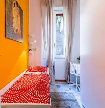 In the lively *Centrale / Garibaldi / Isola* district, this bright room offers a compact, comfortable base close to transport and city life. The room is a queen-size bed space with a measured area of 9.84 m2 and access to an apartment that include...