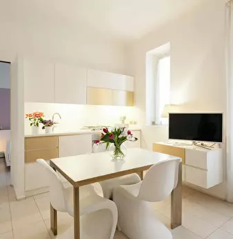 ENG: The two-room apartment offers an equipped kitchen overlooking a living area which gives direct access on one side to the comfortable bedroom with double bed, and on the other side to the bathroom. It can be equipped with a comfortable bathtub...