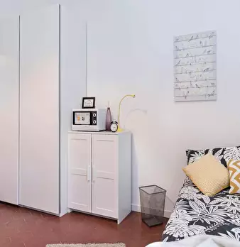 25 sqm entire flat composed by one living/sleeping room with private kitchenette and bathroom, with a single bed, a workstation, tv, dishwasher and washing machine. Eventually available for a couple. Energy class: F, IPE 246.70 Kwh/Sqm year. Cur...
