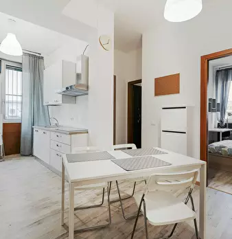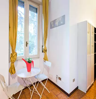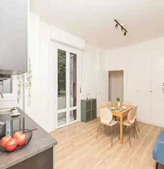 Bright apartment located in a quiet and residential area of Milan. The apartment has a living area with kitchen, sofa and TV; a bathroom with shower and a sleeping area with double bed and large wardrobe. The area is served by all means of surface...