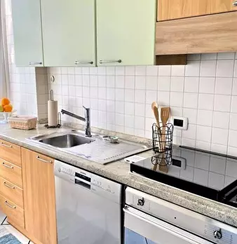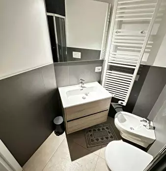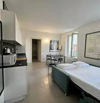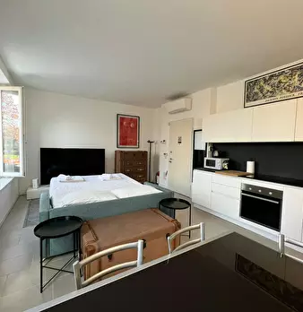 Modern three-room apartment in the Isola area. It has a bright and modern living area with sofa, TV and table. The kitchen is large, bright and fully equipped and has a peninsula table, where you can have lunch. From the living area you have acces...