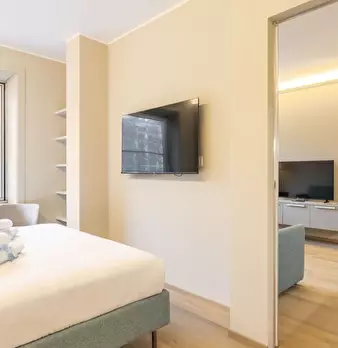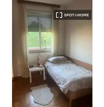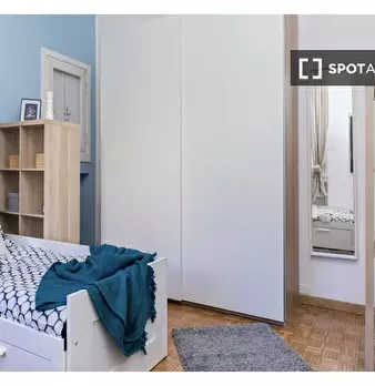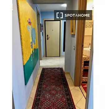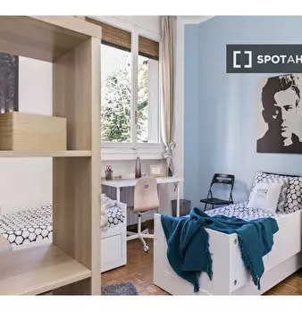 Questa graziosa camera si trova in un appartamento condiviso con due camere da letto nel quartiere QT8 di Milano. L'appartamento è completamente arredato e dotato di comfort moderni, aria condizionata centralizzata, balcone e cucina attrezzata. Sp...