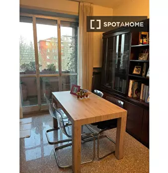 Questa camera in un appartamento condiviso con due camere da letto situato a Villapizzone, Milano, è ideale per donne o professioniste. L'appartamento è completamente arredato e offre una cucina attrezzata, un ascensore e un balcone con vista sui ...