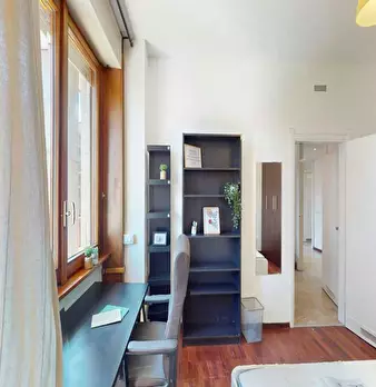 Single room in a shared apartment, composed by 6 bedrooms and 3 bathrooms. Of about 16 sqm with a one and a half bed and a work station. With wifi, air conditioning, dishwasher, washing machine. Energy class: B, IPE 33.59 Kwh/Sqm year. Current t...