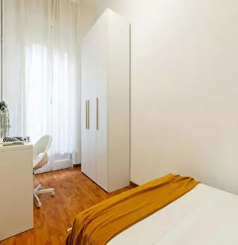 Located in the Lorenteggio / Bande Nere / Primaticcio / Bisceglie area, this bright room offers easy access to local shops and transport, ideal for city living. The room is a comfortable queen-size option of 16 sqm with heating, Wi‐Fi and access t...