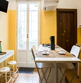 Bright studio apartment with equipped kitchen with microwave, bathroom, and living area **IMPORTANT SPECIAL CONDITIONS ** For this apartment, the following rental conditions apply: 1) electricity is not included but paid upon consumption (0,60€ k...