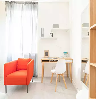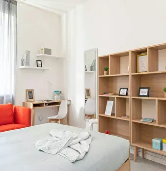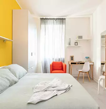 English: ONLY GIRLS! Cozy bedroom for rent in a shared apartment with other girls in Milan. The room comes fully furnished and includes a desk, TV, and wifi. The apartment also features a shared kitchen and bathroom. Convenient amenities such as a...
