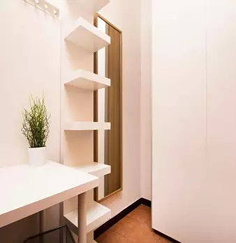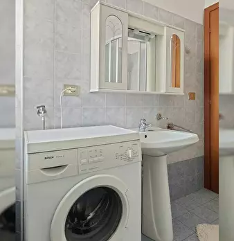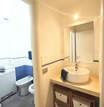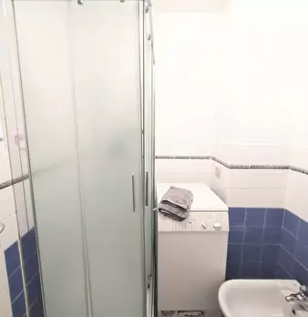 Corvetto - Porto di Mare area 1 minute walk to Porto di Mare yellow line metro Large, finely furnished and recently renovated studio apartment located in basement inside a residential condominium. Entrance to living/sleeping area with open kitchen...