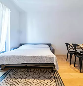 This furnished studio apartment for rent in Porta Romana is equipped with air conditioning, ensuring a comfortable living environment. The apartment is interior, offering a quiet retreat from the hustle and bustle of the city. It's designed to cat...