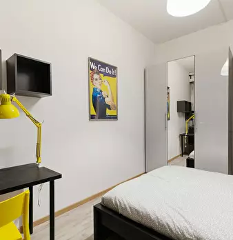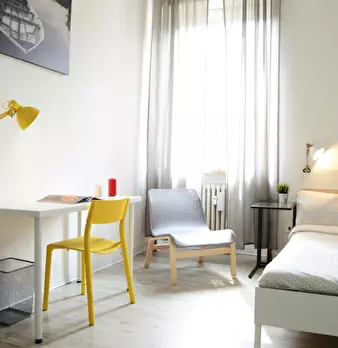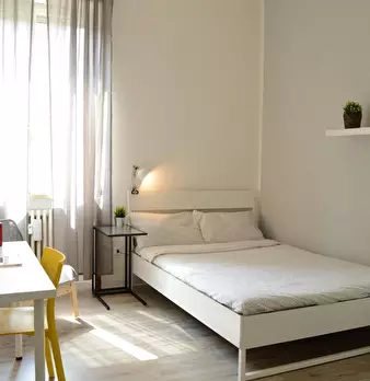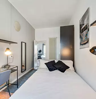 ROOM This private bedroom offers the perfect cozy retreat in Milan! With modern furnishings and a private balcony, your new home includes a comfy bed, a desk to work or study, and lots of storage space. APARTMENT This spacious apartment offers th...