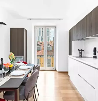 Scoprite un elegante stile di vita urbano in questo appartamento arredato con una camera da letto situato nel quartiere Centrale di Milano. L'immobile è dotato di un moderno sistema di aria condizionata, un forno completamente funzionante e una TV...