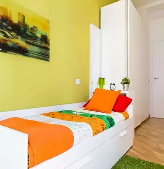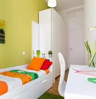 Spacious private Room with single bed. TheApartment is so composed : - 5-bedrooms - 2 bathrooms and 2 kitchens. It comes fully furnished . More features provided: washing machine, heating system, oven The apartment is ready to welcome you :...