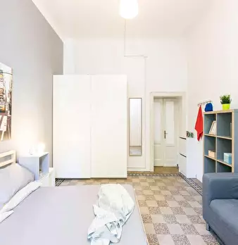Single room in a shared apartment, composed by 9 bedrooms and 5 bathrooms. Of about 16 sqm with a one and a half bed and a work station. With wifi, air conditioning, dishwasher, washing machine. Energy class: B, IPE 47.32 Kwh/Sqm year. Current t...
