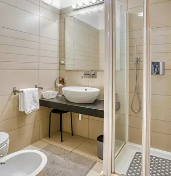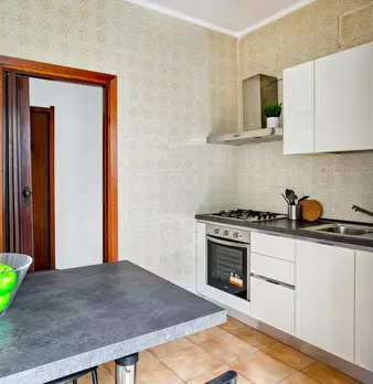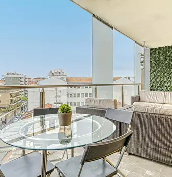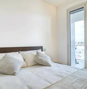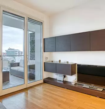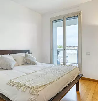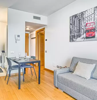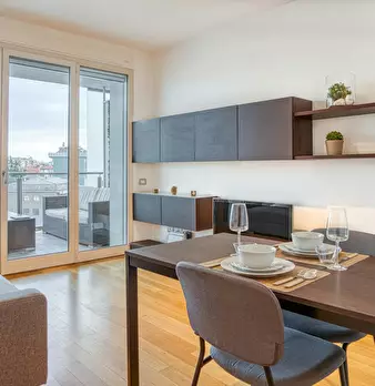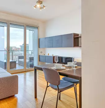 Modern three-room apartment in the Isola area. It has a bright and modern living area with sofa, TV and table. The kitchen is large, bright and fully equipped and has a peninsula table, where you can have lunch. From the living area you have acces...