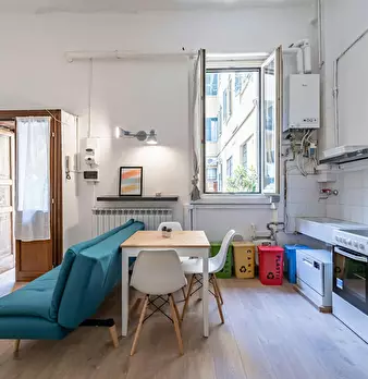 Experience Italy's Vibrant Culture from Your Cozy Room in Milano! Lovely studio apartment, recently renovated. The flat consists of an entrance hall, a living room with an open kitchen and a pull-out sofa. There is also a bathroom and a balcony o...