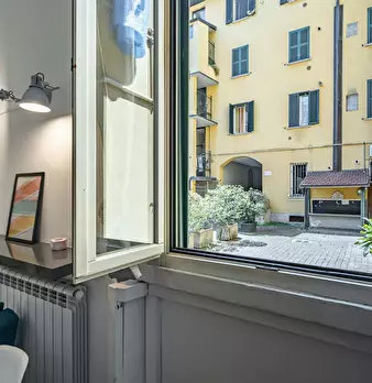 THE APARTMENT The apartment is located on the ground floor facing the courtyard, in the up-and-coming area surrounding Fondazione Prada, very much alive thanks to the presence of cafes, restaurants, bars, supermarkets, and bookstores. Perfectly ...