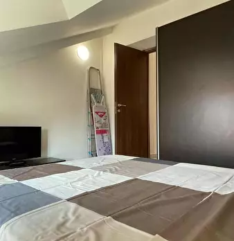 Questo accogliente molocale può ospitare fino a 2 persone ed è situato al primo piano di un edificio residenziale senza ascensore. Non appena entrati si trova un corridoio che porta un soggiorno, arredato con un divano letto matrimoniale, un tavol...