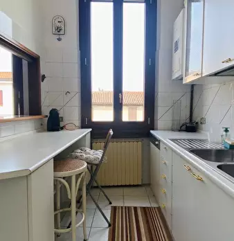 CONDITIONS Appartamento quadrilocale disposto su due livelli, posto al primo piano di un edificio che affaccia sulla via principale per il centro di fronte al fiume Il piano terra si compone di un ampio soggiorno con divano letto e accesso sul ba...