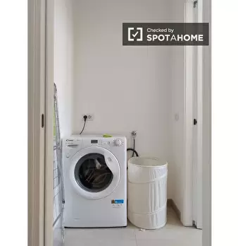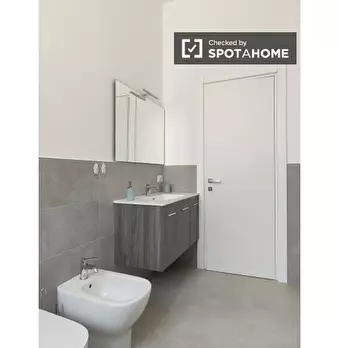 Questa accogliente camera in un appartamento condiviso con 2 camere da letto a Lodi-Corvetto, Milano, offre uno spazio arredato con riscaldamento centralizzato e aria condizionata autonoma. Gli interni sono confortevoli e la cucina attrezzata ne f...