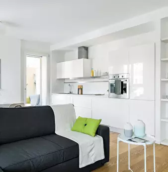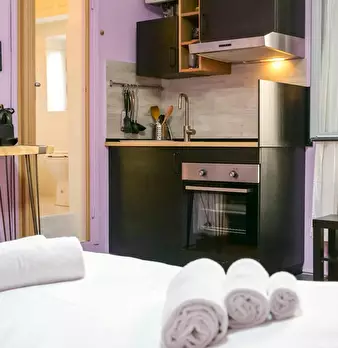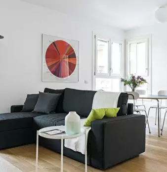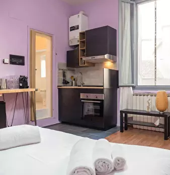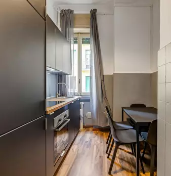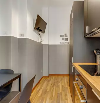 Modern studio located in the S. Agostino area, a few steps from the homonymous stop of the green line. Warm and welcoming, the apartment has a living room with double sofa bed, open kitchen with induction floor and a bathroom with shower and toile...