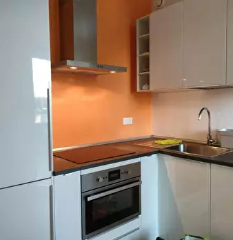 Apartment Description Modern and comfortable one-bedroom loft apartment located on the ground floor, with entrance from the private street Via Sartirana. The apartment opens into a bright and modern living room with a green sofa bed. The fully equ...