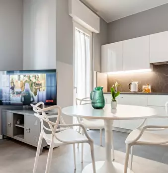 Elegante bilocale situato alle porte di Milano, nel centro di Pero, a due passi dalla fermata della metropolitana M1 PERO, Rho FieraMilano e MIND (ex EXPO). Dotato di ogni comfort (ingresso 'keyless', lavastoviglie, forno microonde, aria condizion...