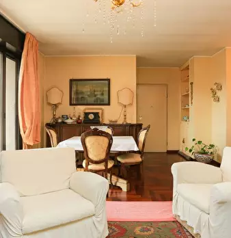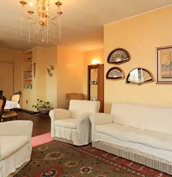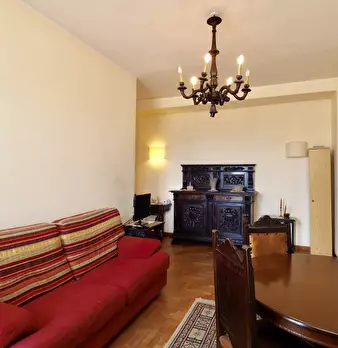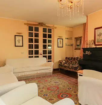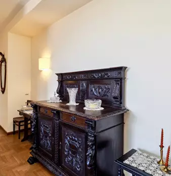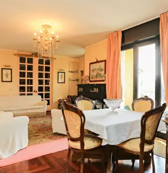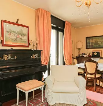 Il design classico italiano riassume il modo in cui questo appartamento è stato arredato. I mobili classici in legno hanno trasformato questo in uno spazio vivente molto elegante in ogni stanza. C'è un grande divano nel soggiorno, che è perfetto p...