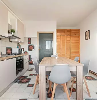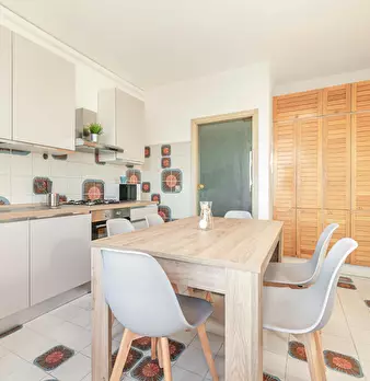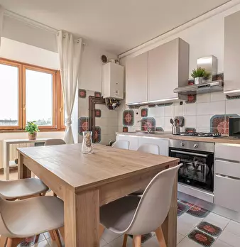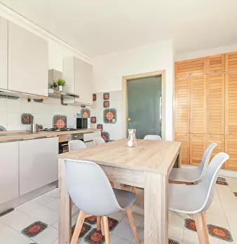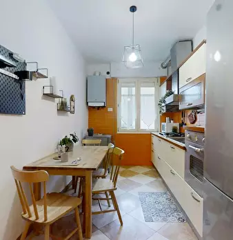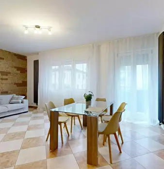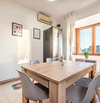 A newly renovated apartment located on the fourth floor, consisting of 5 bright rooms: three with double beds and two with three-quarter beds. It features a spacious, fully renovated kitchen and two modern bathrooms. The apartment is in a strategi...