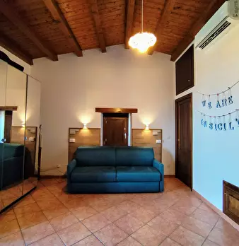 Studio apartment for rent near Palermo with internet and air conditioning. Located in Trabia, we offer accommodation with a small balcony and sea view. The apartment features a large area with a sofa bed, a TV, an equipped kitchen with a fridge ...